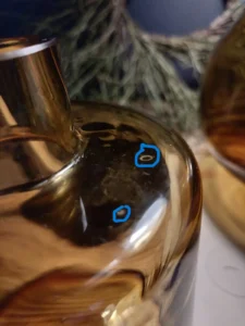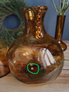 Item Condition: Laura Glassworks vase has a factory blemish in the form of an internal splinter/bump of approx. 4-5 mm (visible in photo #13). The flaw is very faintly visible in daily observation of the vase, it can be seen in backlighting. The photo was taken to make her most visible. In the cone vase, delicate staining from the center (visible in photo 11). Except as described, items without manufacturing defects, scratches or losses.