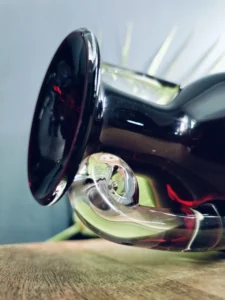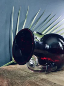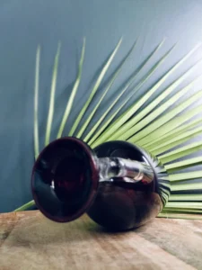🖤 Unikatowy design: szkło w odcieniach ciemnego burgundu z efektem przydymienia oraz rzeźbione uchwyty z transparentnego szkła to rękodzieło najwyższej próby.