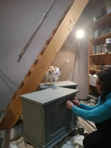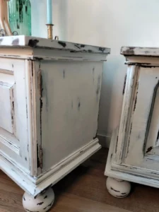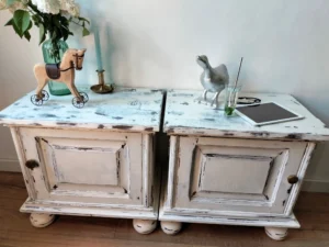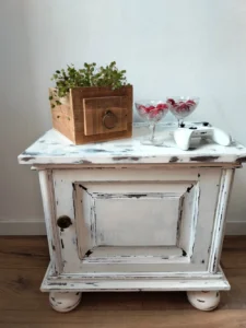 Two cabinets stylized using the Shabby chic method, applied 3 layers of different shades of paint, chipping, slightly uneven surface, lettering clearances, thins, burrs – a lot of treatments, resulting in a cabinet that looks old and worn. For those who are enthralled by rustic vibes or who catch the eye of these unique cabinets.
