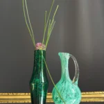 Zarówno dzbanek, jak i wazon mogą być osobnymi akcentami w przestrzeni lub działać razem jako harmonijna kompozycja. Ich forma i odcień nawiązują do klasyki europejskiego szkła artystycznego i sprawiają, że zestaw staje się nie tylko dekoracją, ale także obiektem kolekcjonerskim.