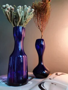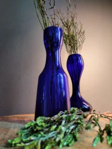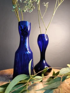Ciemnoniebieskie szkło to jeden z najmocniejszych trendów we wnętrzach – nadaje głębi, elegancji i nuty tajemniczości. Wazony z zestawu „Kobalt o zmroku” pięknie kontrastują z jasnymi ścianami, naturalnym drewnem i roślinami suszonymi. Idealne do ekspozycji pojedynczych gałązek lub jako niezależny obiekt dekoracyjny.