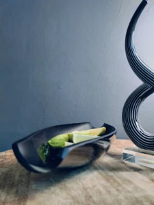 Zmysłowy kontrast – dynamiczna forma w połączeniu z głęboką czernią dodaje elegancji i odrobiny tajemnicy każdej przestrzeni.