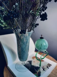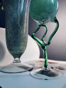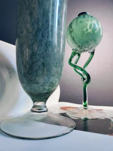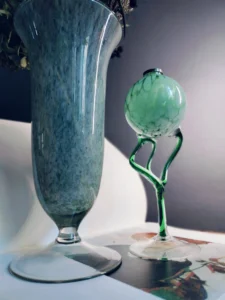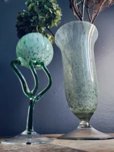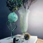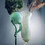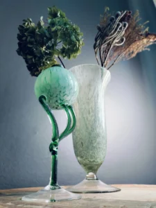 Tchnij w swoje wnętrze powiew świeżości i nieoczywistej elegancji. „Miętowa Poświata” to duet dwóch wyjątkowych form szklanych, które przyciągają wzrok delikatnością koloru i śmiałym designem. To połączenie dekoracyjnej lampy oliwnej w stylu postmodernistycznym z wysokim, pucharkowym wazonem z barwionego, zielonkawego szkła. Oba przedmioty emanują rękodzielniczym charakterem i subtelnym artyzmem, nadając przestrzeni wyjątkowy, artystyczny akcent.