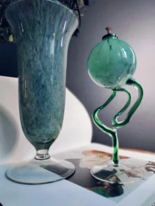 Dla miłośników wyjątkowego szkła, kolekcjonerów form vintage, pasjonatów wnętrz naturalnych i boho. Idealny jako prezent dla osoby z wyczuciem stylu, do dekoracji salonu, sypialni lub przestrzeni pracy twórczej.