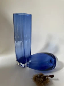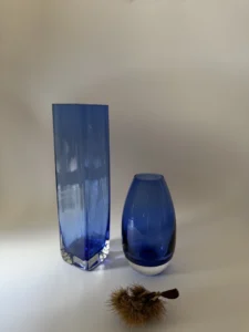 Niepowtarzalne szkło vintage znika szybko – ten zestaw dostępny jest w pojedynczym egzemplarzu. Jeśli przemawia do Ciebie jego kolor, forma i opowieść, nie zwlekaj. Wprowadź do swojego domu nutę artystycznego błękitu z historią.