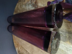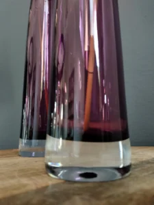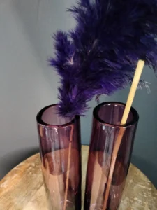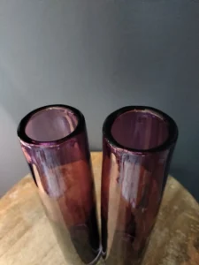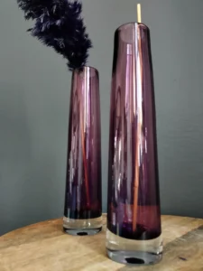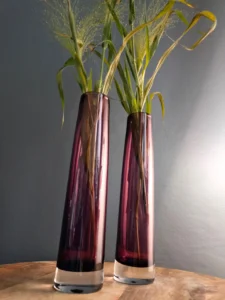 Szukasz szkła, które opowiada własną historię, przyciąga wzrok i wprowadza odrobinę melancholii do wnętrza? Zestaw „Śliwka po przejściach” to dwie wyjątkowe formy z barwionego szkła w tonacjach głębokiego fioletu – z niedoskonałościami, które czynią je jedynymi w swoim rodzaju.