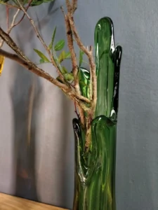 Zielona rzeźba organiczna z nieregularnie pofalowaną linią i szczytowymi „wypustkami” – artystyczny akcent w duchu mid-century modern.