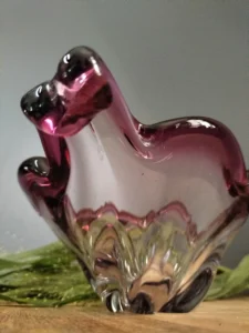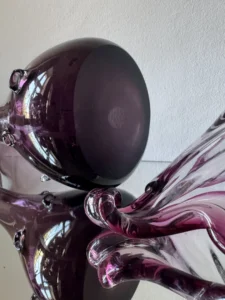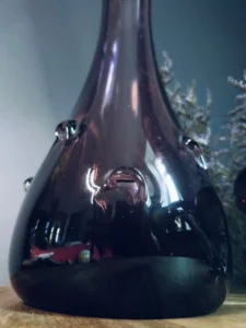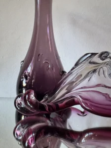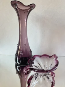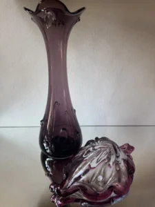 Wazon – duży i efektowny tzw. sękacz, który pochodzi najprawdopodobniej z Huty Ząbkowice z lat 60/70-tych XX wieku (podobne powstawały w innych hutach, np. Sudety czy Hortensja). Mimo podobieństw wzoru niemożliwe jest zdobycie dwóch identycznych egzemplarzy. Szkło barwione w masie na odcień fioletu. Na korpusie dekoracyjne wypustki. Podstawa zeszlifowana na taflę.