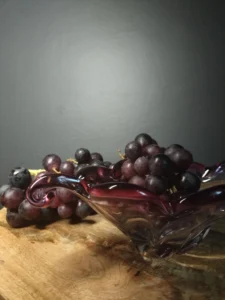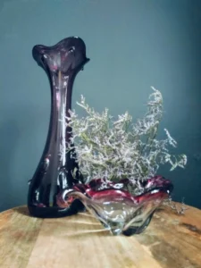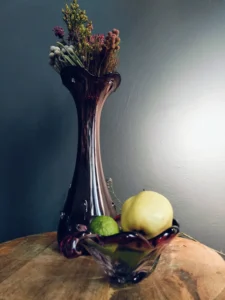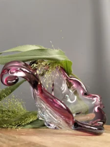 Szukasz dekoracji, która doda wnętrzu charakteru i subtelnej zmysłowości? Violett” to zestaw ręcznie formowanego szkła artystycznego, który łączy lekkość formy z głębią koloru. Składa się z wysokiego, strzelistego wazonu w odcieniu głębokiej śliwki oraz dynamicznie wyprofilowanej misy w kolorze rubinowo-fioletowym, z transparentnymi przejściami. To duet, który oczaruje każdego miłośnika designu z duszą.