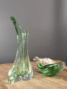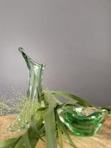 Zielone szkło vintage to trend, który nie przemija – jego obecność uspokaja, ale i przyciąga wzrok. Ręcznie formowane kształty to małe dzieła sztuki użytkowej, które wnoszą do przestrzeni autentyczność i charakter. Każdy z elementów jest jedyny w swoim rodzaju – w pełni unikatowy, niemożliwy do odtworzenia w identycznej formie.