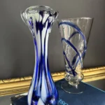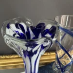 Zestaw dwóch wazonów art glass vintage – kobaltowe szkło z lat 70., ręcznie formowane. Idealne do wnętrz z charakterem.